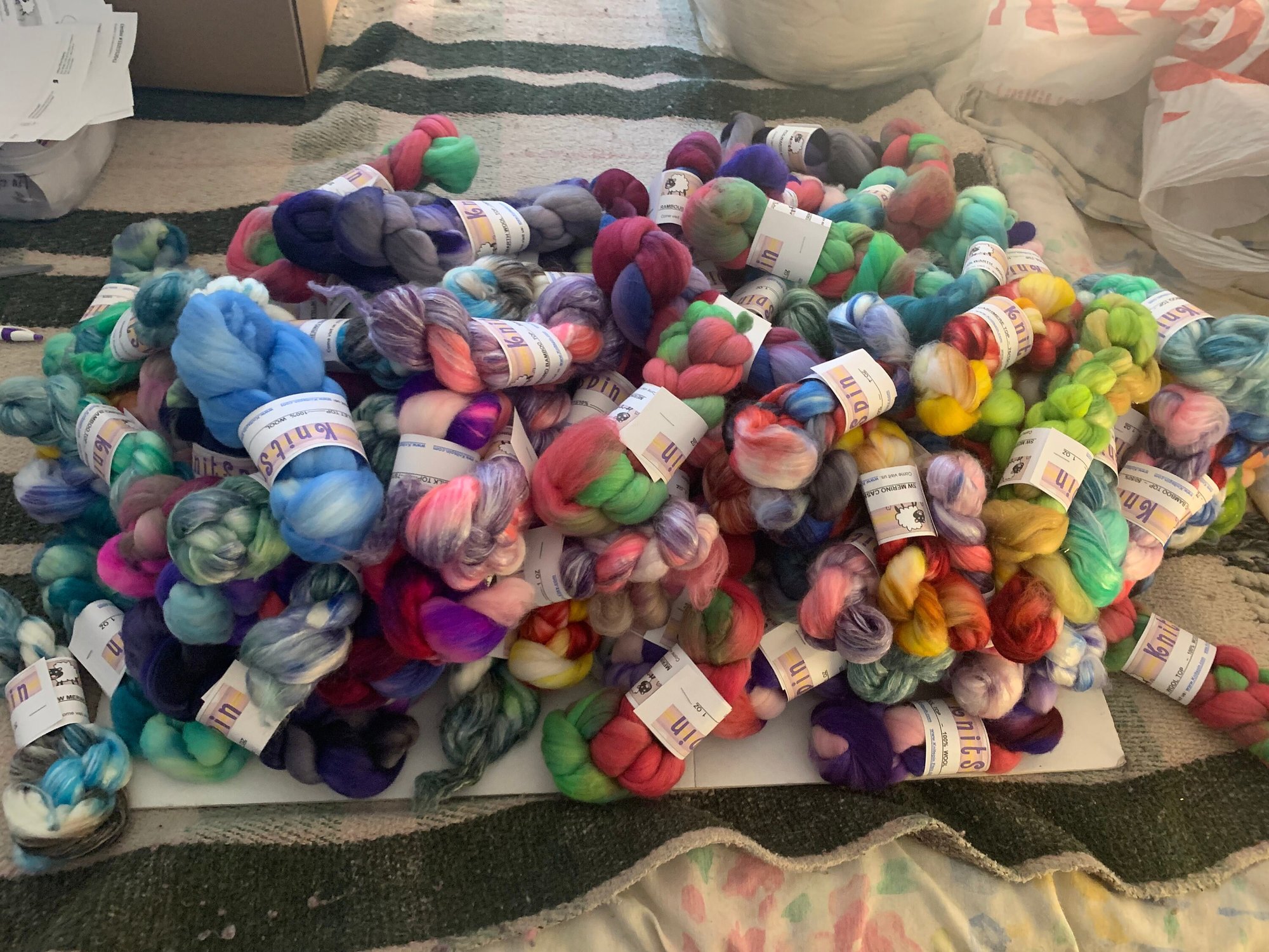 All rovings are handdyed with Acid Dyes colors and they are steam to set the colors.